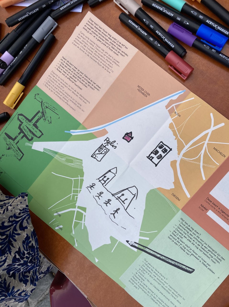 Every workshop was different, but we always asked two questions; one before the walk: ‘what do you think you will hear?’, and one during the walk: ‘what are you actually hearing?’. In between these two questions, a space was created that said a lot about Haren. New thoughts emerged that helped us think Haren as the inbetween space that it is. It showed our preconceptions of what a village or city is and could be. The soundwalk became a dramaturgic process of listening to thoughts emerging from the space, the questions asked upfront, the participants, the plants,… These workshops crystallised in a small interactive publication with instructions, that makes the soundwalk workshop available for everyone (see Figure 8).