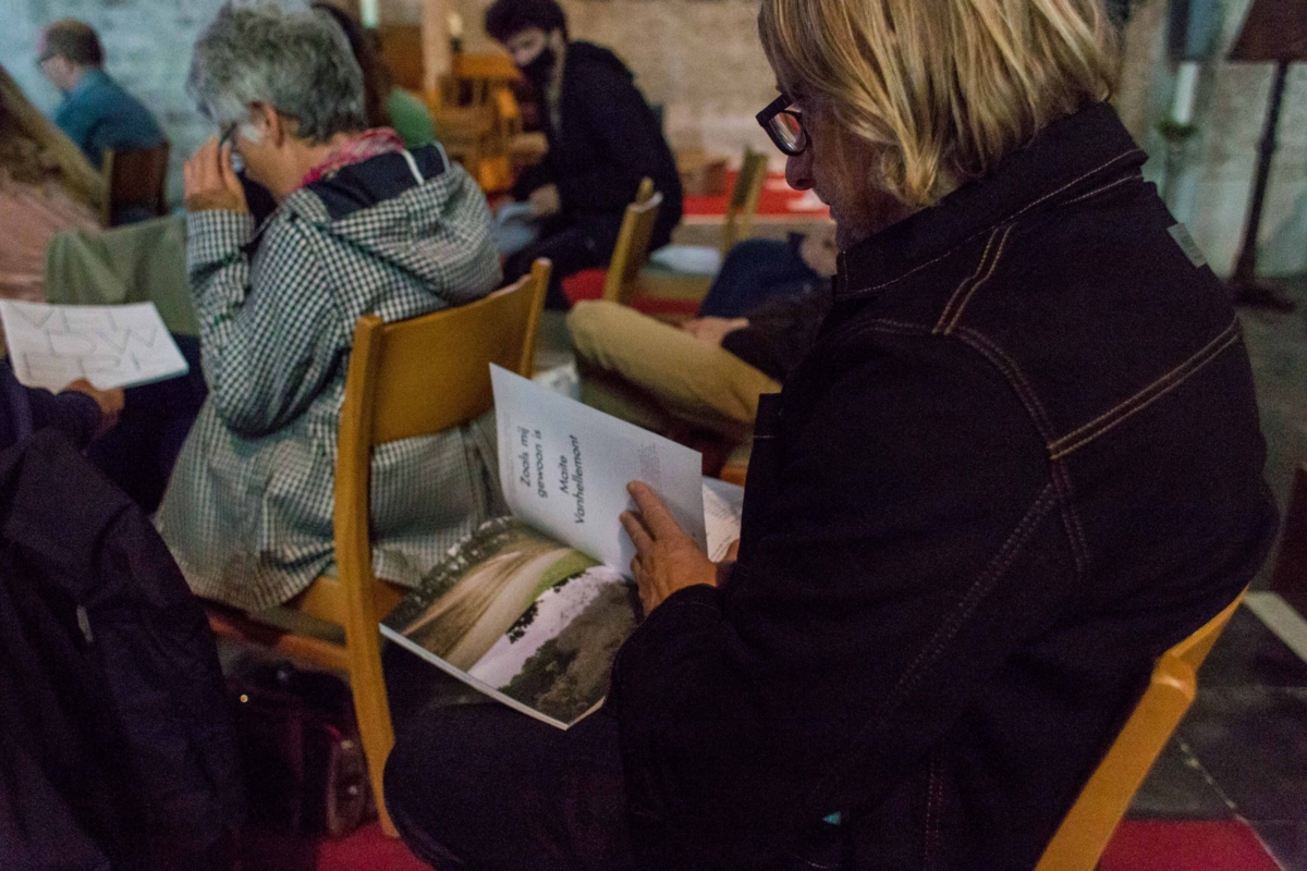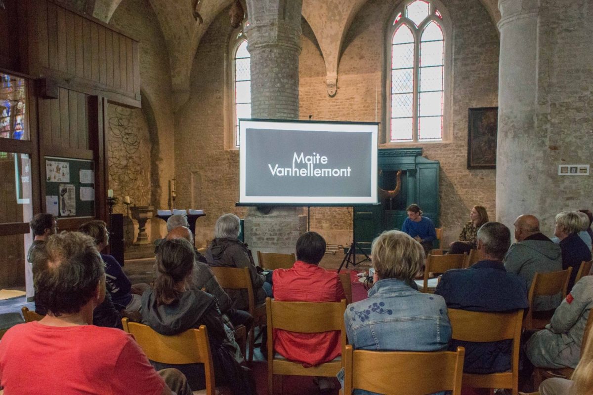 Op donderdag 26 augustus deelde Maite Vanhellemont een tussentijdse inkijk in het persoonlijke proces rond Zoals mij gewoon is in de Sint-Amanduskerk in Bekegem.