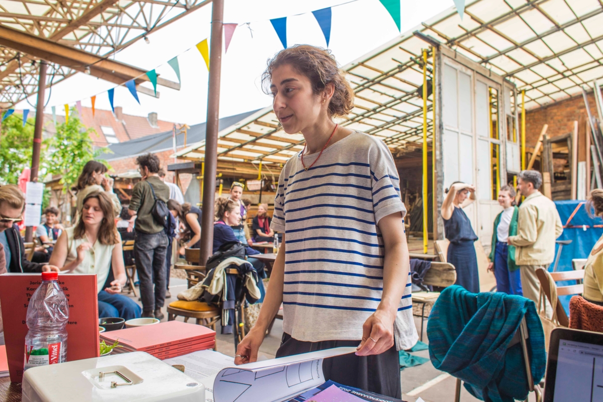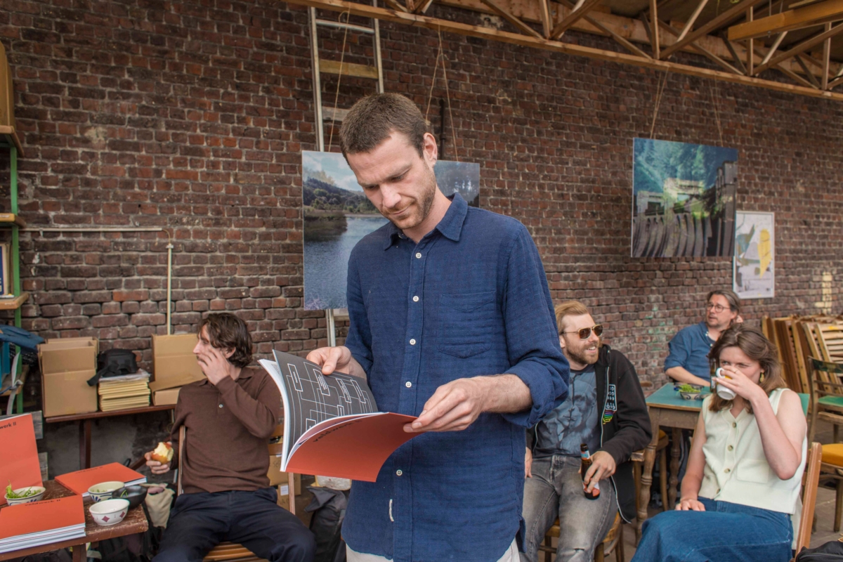 Op het einde van dit proces verzamelen we de verschillende trajecten in een publicatie, gedocumenteerd en uitgediept. Deze werd op 21 mei voorgesteld in de Koer in Gent, samen met drie films die gelinkt zijn aan of ontstonden tijdens Veldwerk II: REROOTING (2023) van the Post (Film) Collective, perpendicular parallels (2023) van Karolina Michalik en Ruderalia (2023) van Joris De Rycke.
