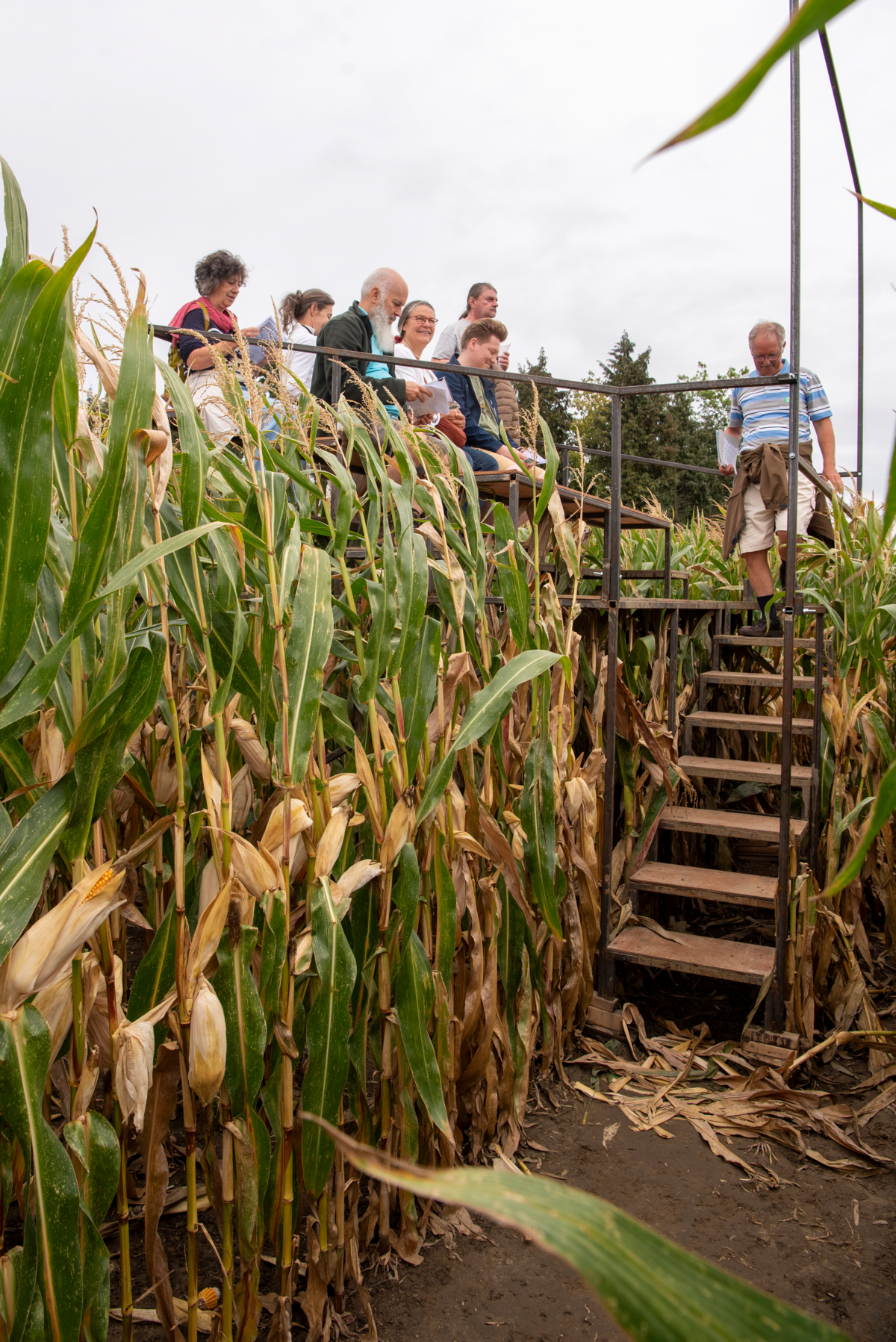 Voor Kunst & Zwalm bouwde een-twee aan een in-situ cinema, een sculptuur die het midden houdt tussen uitkijktoren, rustplek en tribune. Ze vertoonden er een landschapsfilm, serveerden popcorn met lokale smaken en lieten het publiek verdwalen in een zomers maïsveld.