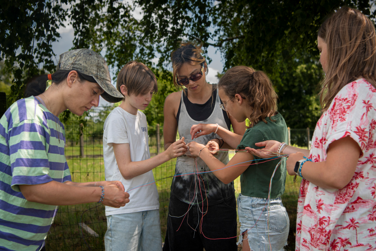 In samenwerking met de leerlingen van de derde graad van Het Groene Lilare ontwikkelde kunstenaar Maïly Beyrens Xu een traject rond netwerken — zichtbare en onzichtbare. Van wortelstelsels tot vriendschappen, van schimmeldraden tot sociale verbanden. Wat leeft onder onze voeten, leeft ook tussen ons.