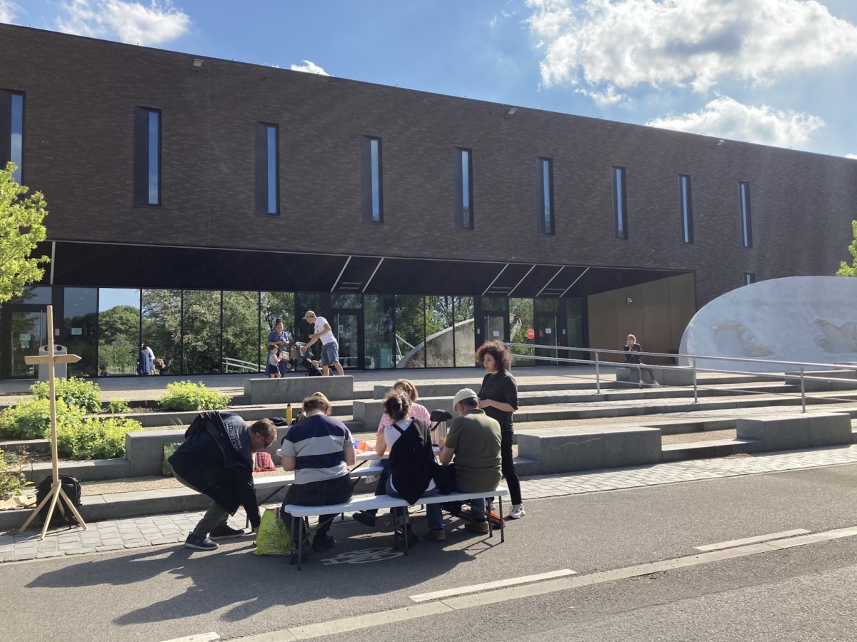 So how can we, as village dramaturgs, contribute to telling, spreading, and (re)activating these marginalised stories in Haren? We tried to answer this question through two actions: an intervention at the entry of the prison, and various soundwalk workshops in the public spaces of Haren.