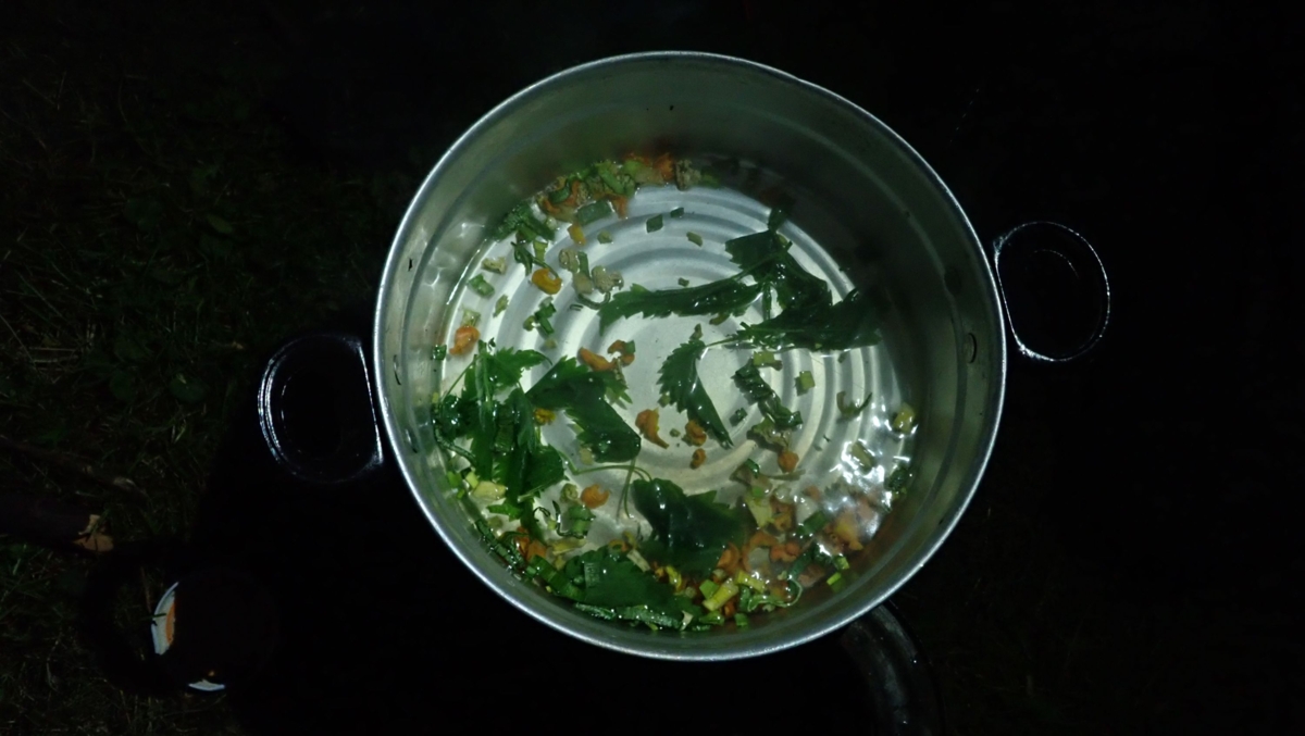 ’s Avonds zullen we slapen in een andere tuin. Om die te kunnen bereiken moeten we een eilandje vol vogels voorbij wandelen. Vogels zingen luidop, zoals ze ook de voorbije dagen deden. Vuur maken blijkt moeilijk, aangezien we geen hout meer hebben en enkel nat hout kunnen vinden, maar we hebben het gehaald! ’s Morgens worden we vroeg gewekt door een luid gevecht tussen twee naburige hanen.