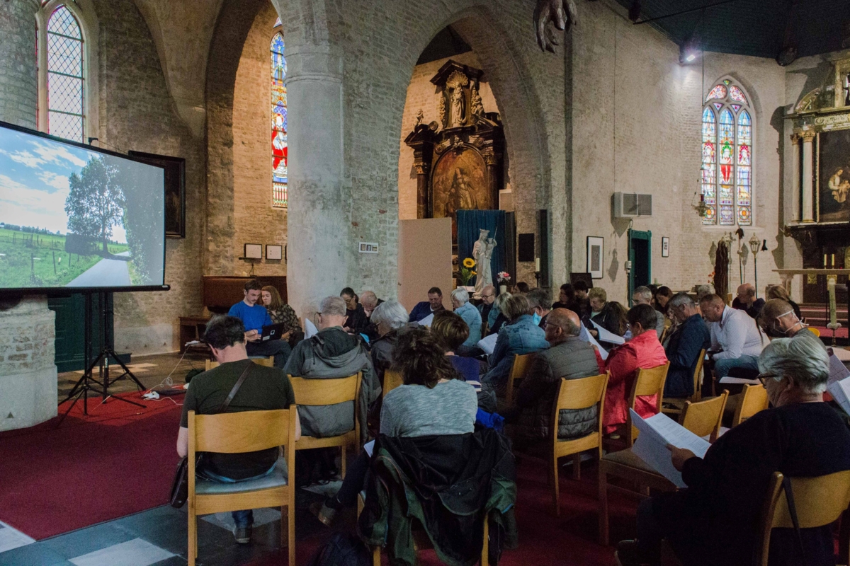 Op donderdag 26 augustus deelde Maite Vanhellemont een tussentijdse inkijk in het persoonlijke proces rond Zoals mij gewoon is in de Sint-Amanduskerk in Bekegem.