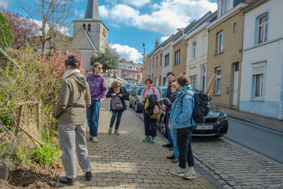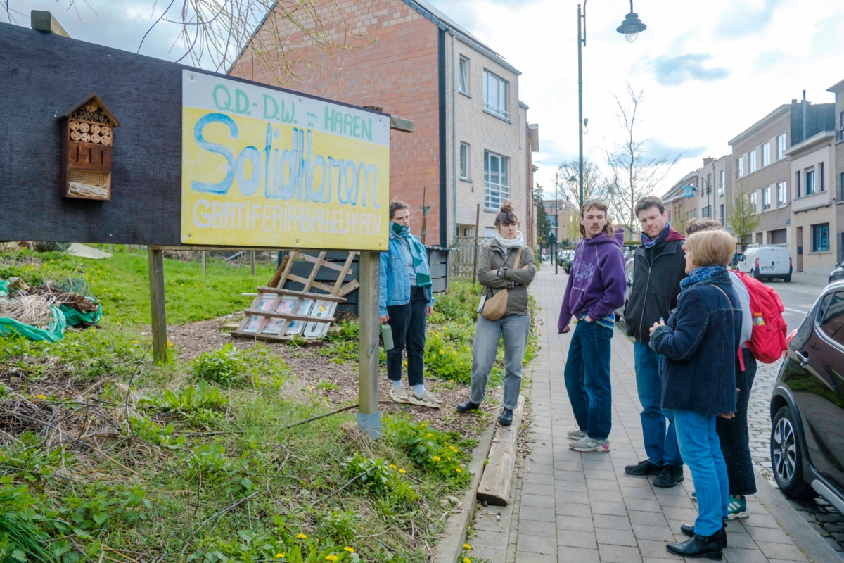 In maart kwamen de kunstenaars van het Dorpsdramaturgie-project samen in Haren, de werkplek van Aulona Fetahaj en Ewoud Vermote. Ze volgden er een rondleiding, gegidst door geëngageerde lokale bewoner Fabienne. Ze is medebezieler van Solid'Haren, een vzw die tot doel heeft om de gemeenschap van Haren te versterken via collectieve moestuinen, en leidde de groep rond langs de vele moestuinen die Haren rijk is. Een herinnering van haar landelijke verleden, maar tegelijk ook een vorm van verzet: waar moestuinen zijn, komen (althans voorlopig) geen nieuwbouwprojecten.