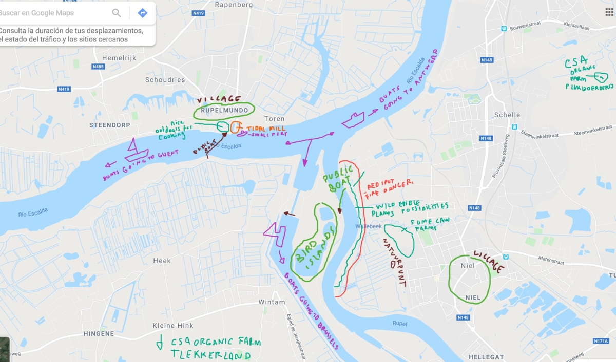 Het Natuurgebied Noordelijk eiland is een ontmoetingsplaats voor verschillende vogelsoorten, waarvan sommige langs de rivier reizen. Langs het fietspad naast de Rupel staan leuke eetbare planten. Het natuurgebied rond Niel is beschermd tegen bosbranden, dus waarschijnlijk is het niet mogelijk om daar te koken. Er is een mooie buitenruimte naast de Rupelmonde tindalmolen die misschien goed is als vergader- of kookplek.