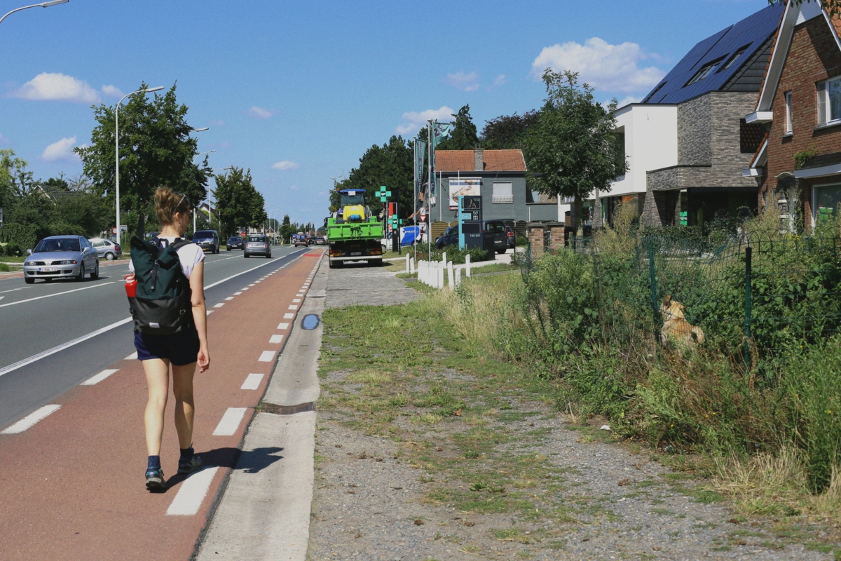 De sprokkelroute bestaat uit meerdere wandeltochten langs de N9- telkens etappes van om en bij de 10 km tussen twee stations of bushaltes. Het wandelen biedt een tegengewicht aan de snelheidsgenererende lijn en zoekt een tussentempo, tussen het flitsen van de auto’s en het roerloos staan van de huizen in de rand. Het wandelen voelt als verglijden, een soort langzaam wegzinken in het decor en de werkelijkheid van de steenweg. Een tempo om taferelen de kans te geven zich voor te doen: een man laadt boodschappen uit, een gezin stapt de deur uit, een vrouw snoeit de haag, een wachtrij aan de frituur, terrasgangers baden in de zon.