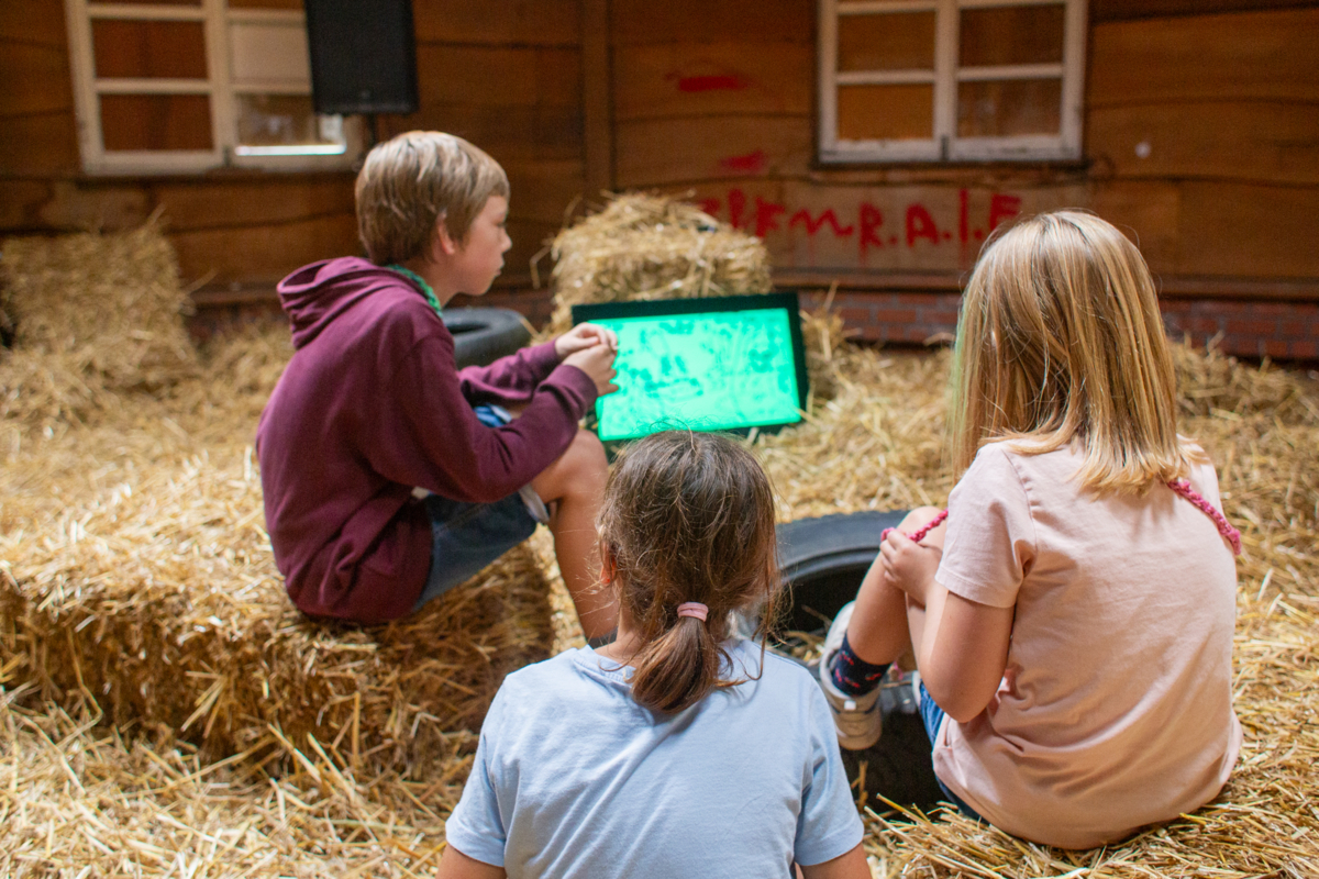 Tijdens verschillende sessies onderzochten de kinderen hun dagelijkse omgeving op een andere manier. Zo tekenden ze samen met enkele gastartiesten collectief rond een boom, maakten muziek met gevonden geluiden en vlochten textiel met materialen uit de omgeving. Elke ontmoeting bracht nieuwe verbanden aan het licht. Wat zich onder de grond afspeelt, blijft vaak onzichtbaar — en juist daarom zo inspirerend. Daar waar het oog stopt, krijgt de verbeelding vrij spel. Het werk mondde uit in een installatie waarin geluid en beeld elkaar kruisen: een klanklandschap verweven met sporen van experimentele fotografie.
