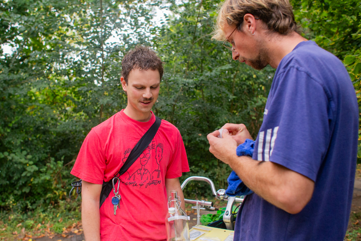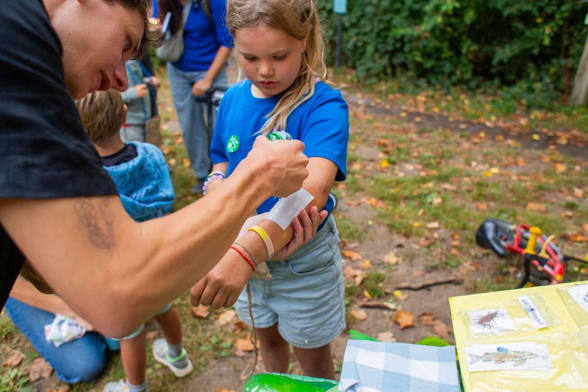 Hoe is het om te leven in, rond en onder de grond van Zwalm? Welke planten en vissen vonden hier een thuis en wat is zeldzaam, maar komt gelukkig nog steeds voor? Myvillages bracht een glimp van de biodiversiteit en geologische identiteit van dit stukje levend groen in beeld. Daarvoor tekenden ze de fauna en flora van Zwalm en gebruikten dit als basis om tattoos te ontwerpen. Hun mobiel Tattoo Station Zwalm bestreek de oevers van de Zwalm, met verhalen over wat er leeft en een aanbod van plaktattoos . Ze zitten de bezoekers graag dicht op de huid. Daarom kon je het laatste weekend je favoriete tijdelijke plaatje ook echt laten vereeuwigen op je lichaam.