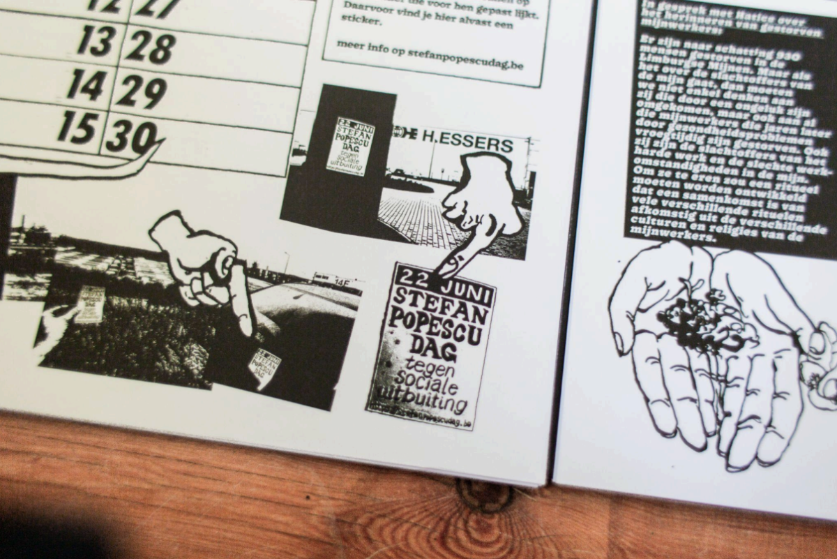 Our conversations yielded so many important moments, people and events that, when we wrote them down in our notebooks, an artistic form emerged almost by accident. Our notebooks became a calendar of memorable days – days that matter to the people of the region because they make the place what it is. There were days remembering seemingly small things, like walks with a granddad. But there were also days about big events, like the one remembering the legal victory in a social exploitation case of truck driver Stefan Popescu against logistics giant H. Essers, the region's biggest employer. For this day we created and distributed a sticker (Figure 9.)