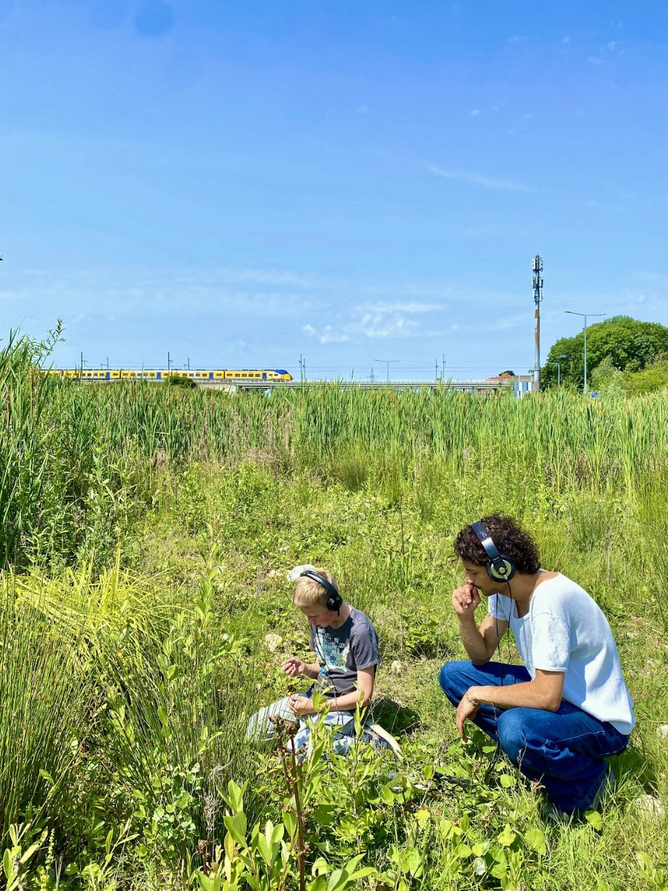 Besides the intervention at the prison, we also held several soundwalk workshops in collaboration with sound artist Némo Camus, as depicted in Figure 6 and 7. Sound proved to be a perfect carrier to (re)activate stories and memories. While walking and listening, the rustling of the leaves became an important personage, as did the planes, trains, and the distant sounds from the prison. Stories were shared about the friendships that were created during the struggle against the prison, or about the village-like character of Haren that made people decide to move to Haren.