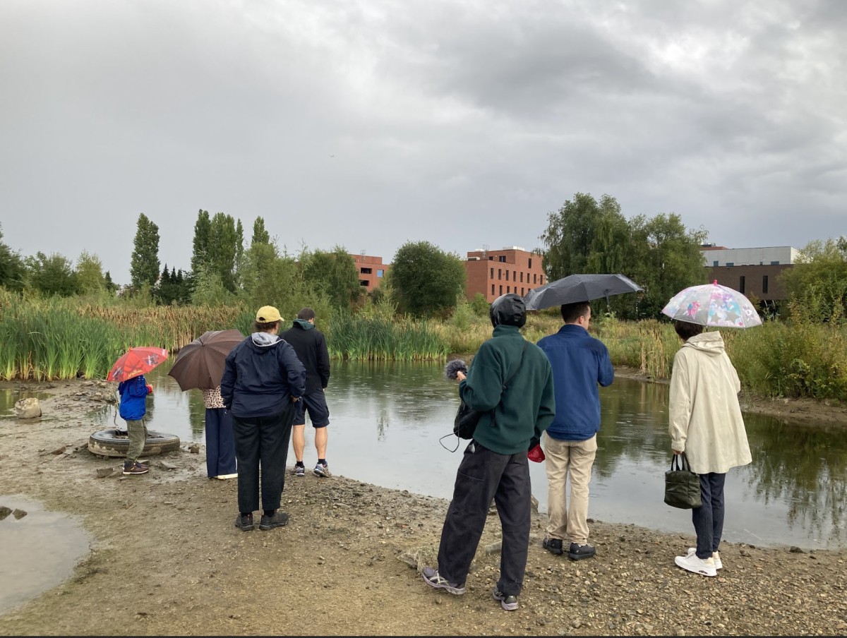 Figure 6: Photo of a soundwalk workshop by Aulona Fetahaj in 2025. Figure 7: Photo of a publication by the authors and graphic designer Pia Jacques de Dixmude, with drawings from a soundwalk participant, in 2025. Figure 8: Photo of a soundwalk workshop by the authors in 2025.