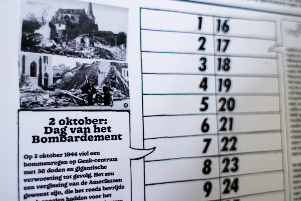 Vandaag de dag: nieuwe kalender van het oude mijnbekken is een kalender die bestaande en nieuwe herinneringsdagen uit het voormalige Limburgse mijngebied verzamelt. Deze komt voort uit een tweejarig traject waarbij Martha Balthazar en Vivi Focquet zich lieten rondleiden in de Limburgse mijnstreek. Vanuit een fascinatie voor het gedeeld geheugen van de streek, en dan vooral de vraag hoe dit ontstaat en wie daar wel en niet aan kan bijdragen, begonnen ze hun gesprekken met de opener “Wat of wie moet er hier herinnerd worden?”. Uit al die gesprekken ontstond deze kalender, ontworpen en geïllustreerd door Carole De Buck. Het is een collectief voorstel voor een nieuwe, meer open, en gedragen herinneringscultuur. Er zijn nog blanco dagen, dus aanvullen en aanpassen is steeds mogelijk.