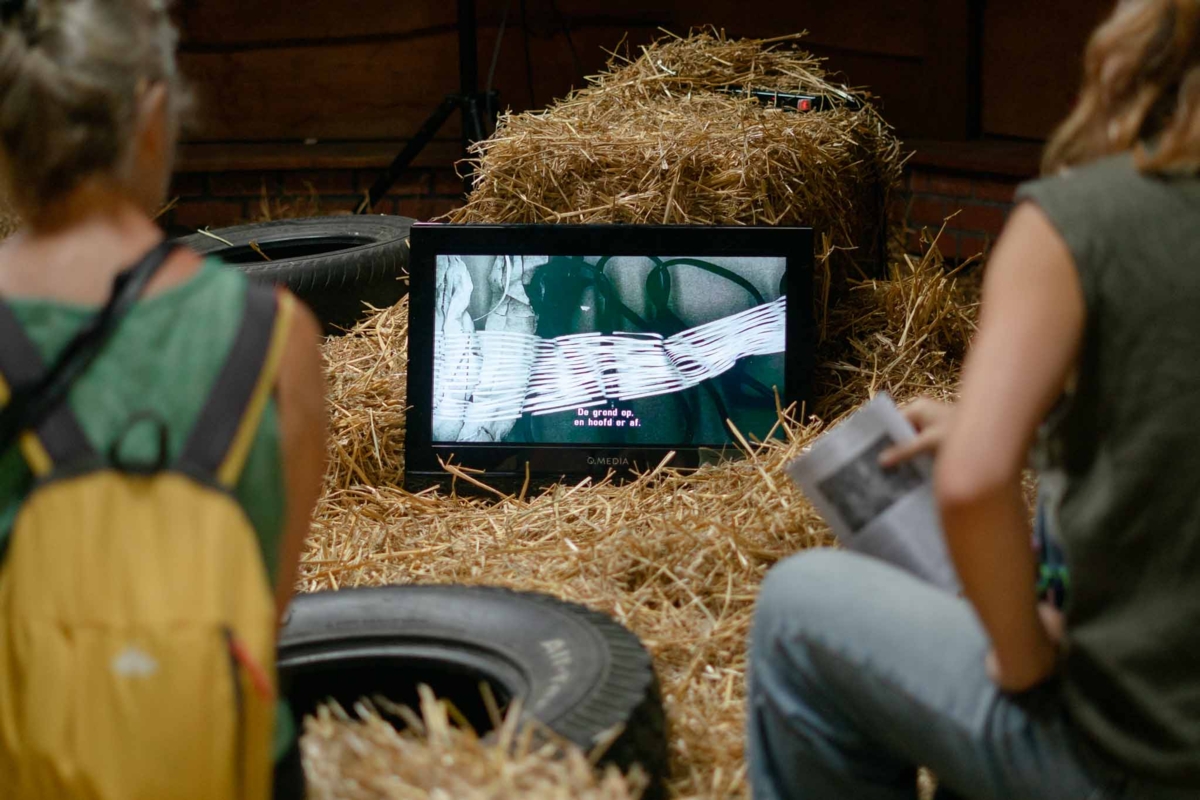 Tijdens verschillende sessies onderzochten de kinderen hun dagelijkse omgeving op een andere manier. Zo tekenden ze samen met enkele gastartiesten collectief rond een boom, maakten muziek met gevonden geluiden en vlochten textiel met materialen uit de omgeving. Elke ontmoeting bracht nieuwe verbanden aan het licht. Wat zich onder de grond afspeelt, blijft vaak onzichtbaar — en juist daarom zo inspirerend. Daar waar het oog stopt, krijgt de verbeelding vrij spel. Het werk mondde uit in een installatie waarin geluid en beeld elkaar kruisen: een klanklandschap verweven met sporen van experimentele fotografie.