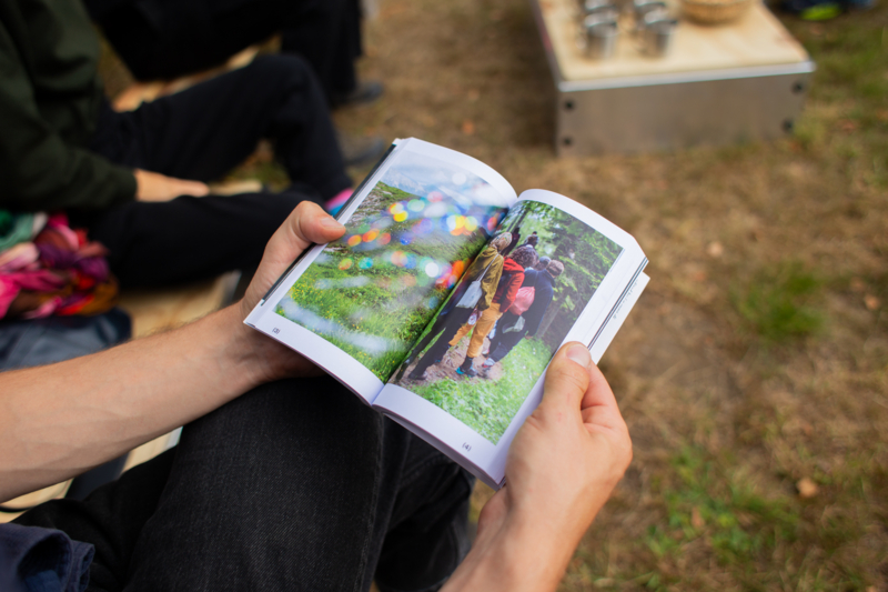De publicatie A Nomadic Book is geboren uit deze context: een levend document dat de werkwijze van de Nomadic School weerspiegelt en verdiept. Het boek onderzoekt hoe kunstpraktijken gevormd worden door de bergen — als landschap, als idee, als levende materie. Het brengt stemmen samen uit de podiumkunsten, architectuur, ecologie, geologie, geluidskunst, dramaturgie, beeldende en literaire kunsten, en antropologie.
