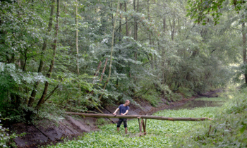 Kunstenaar Sibran Sampers werkte tijdens zijn traject binnen Veldwerk I aan tidal sidle (noun) - a furtive advance under the influence of tidal forces: : een onderzoeksproject waarin hij zijn fascinatie voor water(wegen) registreert en erover reflecteert. Een uitgekiende plek aan een oever vormt het vertrekpunt van zijn gedachtestroom. Tijdens dit langlopend traject wil hij op verschillende plekken tijdelijke sporen nalaten en werken met wat rondom hem aanwezig is.