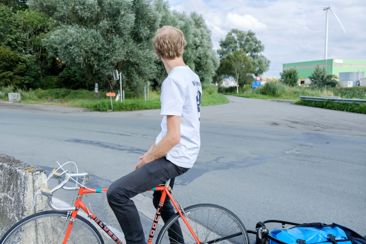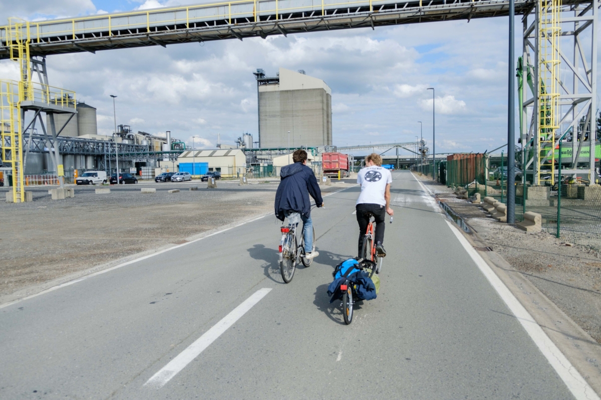 Enkele weken geleden nodigde je me uit om deel te nemen aan één van je tochten doorheen de periferie van Gent. De onbenoembare zone, het snijvlak van ruraal en urbaan, plekken waar industrie het overneemt van natuur. Dwalend op onze fietsen raast het verkeer langs ons. Ik voel me bijna te klein om er te mogen zijn. Antennes, schoorstenen, massieve stenen, artificiëel water, platformen en verloren groene zones vullen het landschap. Geen plek voor mensen in een omgeving gevuld met manmade landmarks.