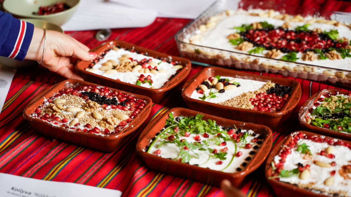 Op 7 juni leerden we kolyva bereiden, een ritueel gerecht gemaakt van tarwe, honing, noten en gedroogd fruit. Het is geworteld in Oosters-orthodoxe tradities en wordt bereid voor Ψυχοσάββατο (Psihosavato), een moment gewijd aan het herdenken van de overledenen. Samen onderzochten we manieren om degenen die ons zijn voorgegaan te eren.