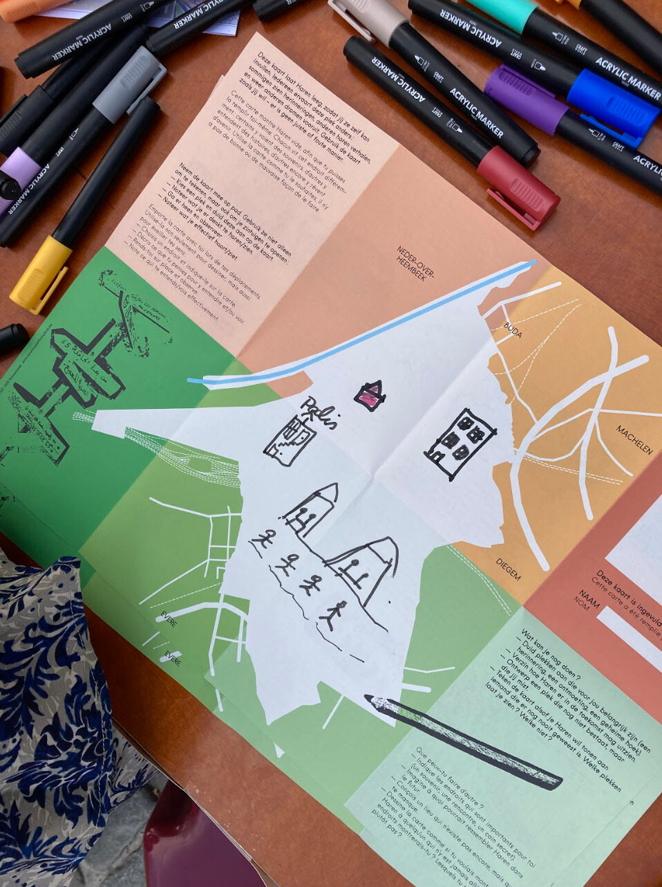 Through conversations, interviews, workshops and archival research, we quickly came to the conclusion that there is a committed undercurrent in Haren that cultivates the mental image of ‘the village’ in Haren. For example, there is the organization that manages a collective vegetable garden based on the ideal of social cohesion and as a celebration of Haren's rural history, but which nevertheless promotes one particular way of being together: monthly meetings, in French or Dutch, with certain rules that must be followed. As village dramaturgs, we found it interesting to support an initiative that opens up this idea of social cohesion to a community that is often excluded from Haren: the incarcerated and their visitors. This exclusion is a double one: there is the physical exclusion from society and the prejudices they have to face, but also the fact that the prison is built at the very edge of Brussels, in an area that is not easily reachable by public transport.