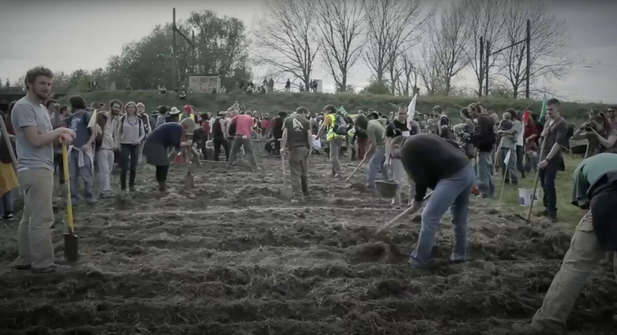 Figure 3: Screenshot of a video of the Patatistes action, when a group of activists and local residents planted potatoes on the site of the planned prison (2014). Source: Zad de Haren.