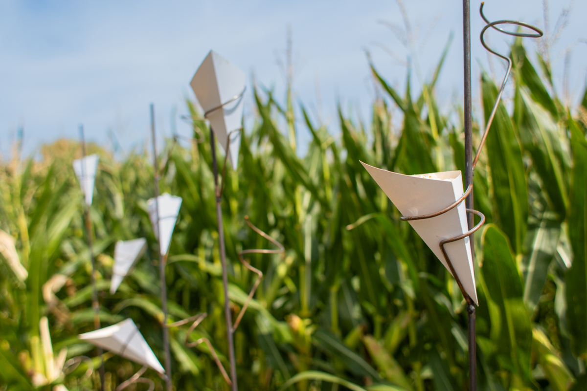 Voor Kunst & Zwalm bouwde een-twee aan een in-situ cinema, een sculptuur die het midden houdt tussen uitkijktoren, rustplek en tribune. Ze vertoonden er een landschapsfilm, serveerden popcorn met lokale smaken en lieten het publiek verdwalen in een zomers maïsveld.
